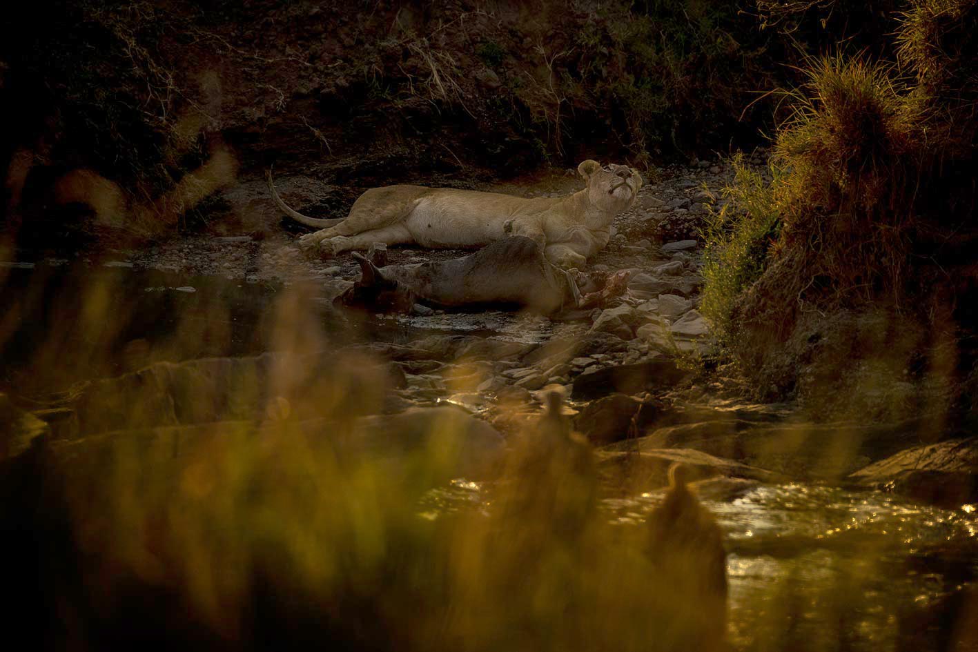 As a wildebeest passes close by, the tension builds, and in a split second, the lioness springs into action, showcasing the raw drama of survival in the wild. The interplay between lush surroundings and hidden predators not only reveals the harsh realities of life in the savannah, where every day is a battle for survival, but also creates exceptional photography opportunities, offering action shots that capture the tension and drama of the hunt.